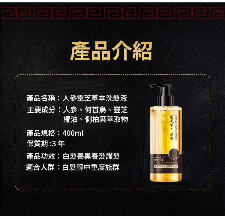 【28天白髮變黑髮】人參靈芝洗髮液
